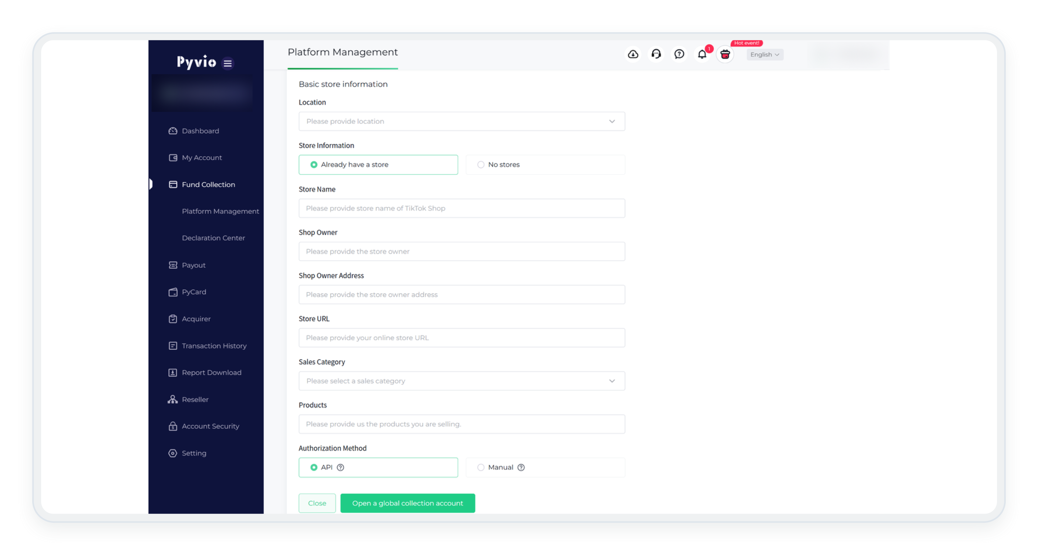 The following shows how to collect funds from TikTok Shop platform and manage your funds in the all-in-one platform Pyvio.
