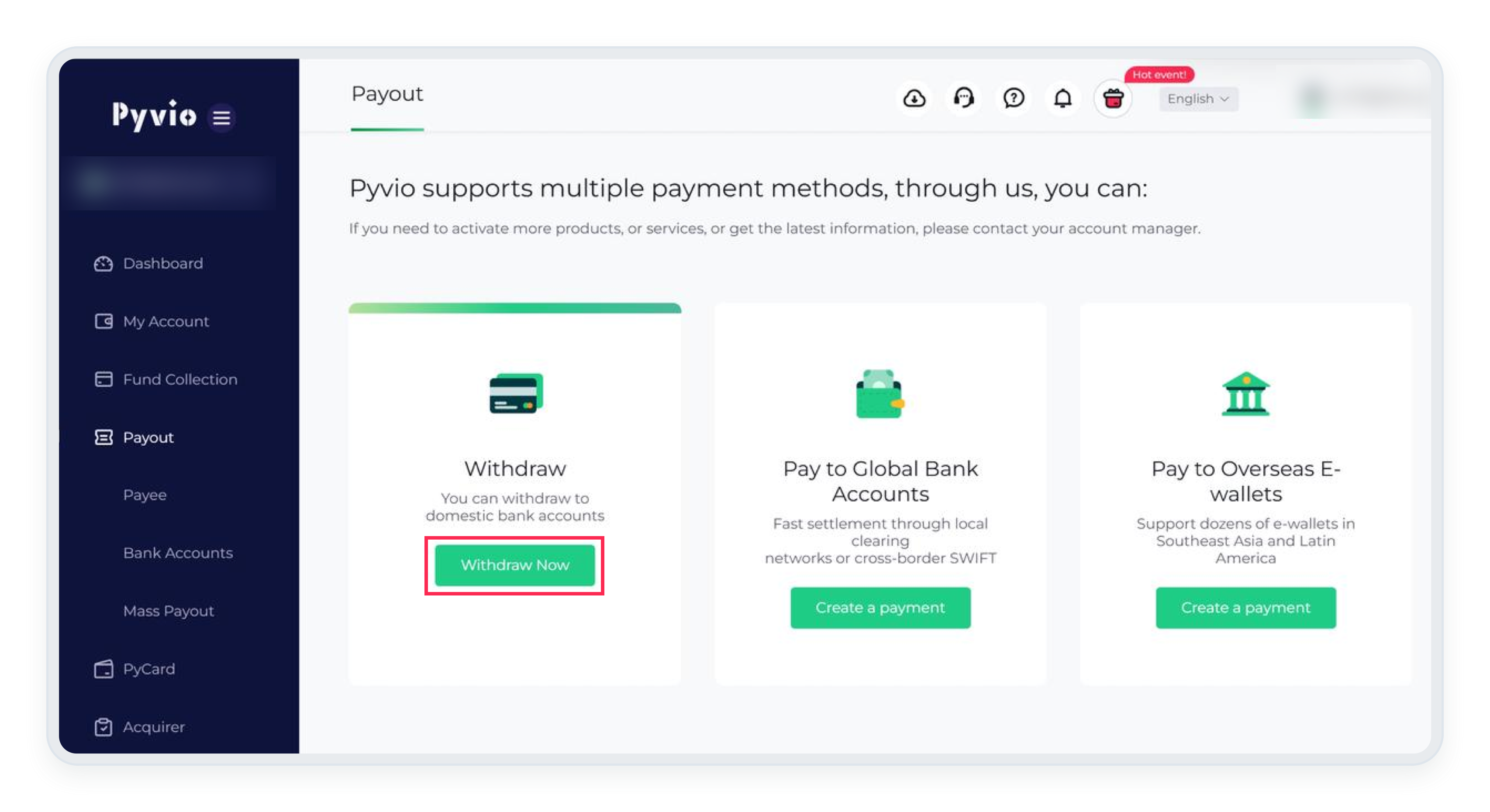 When all required materials are uploaded, funds will be credited to your Pyvio account. You can either withdraw the funds to your bank accounts or pay others with your Pyvio account balance.